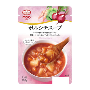 鍋にボルシチスープ、輪切りにしたオクラとソーセージを入れ温める。